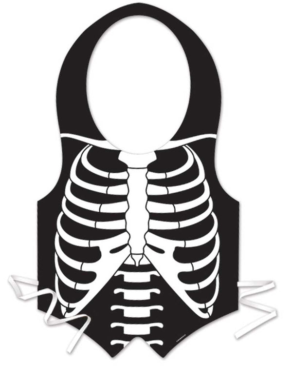 This Skeleton Rib Plastic Vest is an easy to wear option for your Halloween party. This plastic bib-style vest is features a digitally printed transfer image that is backed with interfacing for support. For ease of wear, the vest also has string attached to ensure that it stays in place. This vest is a great option for a quick, cheap and easy themed costume and while putting in minimal effort so you can spend more time having fun! Great for bar staff and waiters at a themed event!