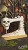 This Skeleton Sewing Machine Animated Decoration 27cm features light-up eyes and a sound sensor that brings it to life with eerie animations. Perfect for adding a touch of haunted charm to your indoor Halloween decor, this unique piece is sure to catch the eye of all who pass by. Its compact design makes it easy to place anywhere, and it's activated by sound, adding an interactive element to your spooky setup. Ideal for Halloween parties, haunted houses, or just to surprise your guests with a bit of unexpected fright. Pair it with other spooky decorations for a complete haunted experience.