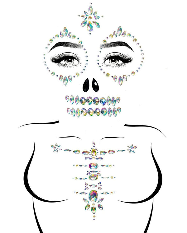 Skeleton Skull Adhesive Face and Chest Jewels Sticker