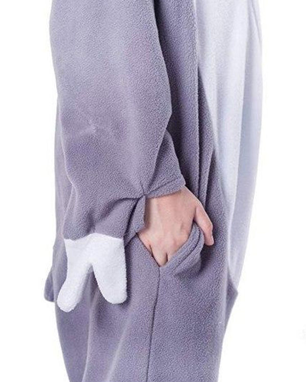 - Plush and comfortable grey jumpsuit.