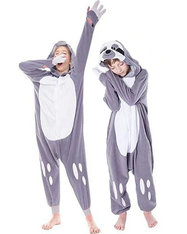 Join your friends in the rainforest as you wear this adorable Sloth Toddler and Kids Costume. The plush and comfy jumpsuit is grey with a white belly and white spots on the knees and features pockets and attached white gloves that you can easily slip your hand in and out for mobility. The costume also features a character hood with a plush sloth face. With this jumpsuit, you'll transform into everyone's favorite slowpoke for your next animal party or Book Week event.