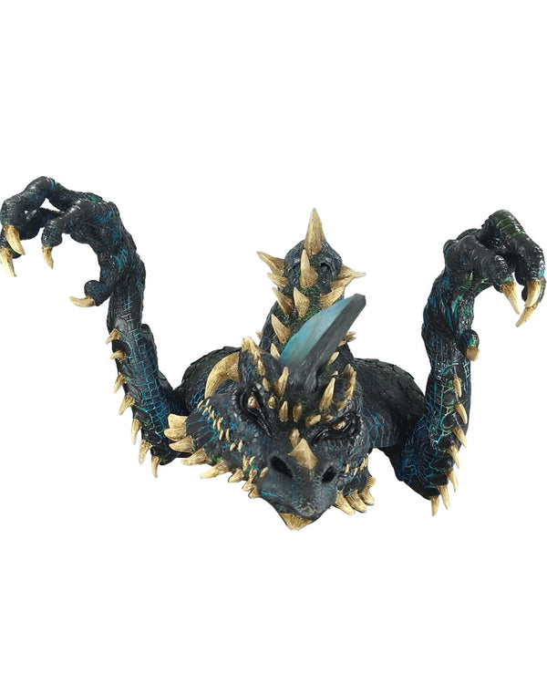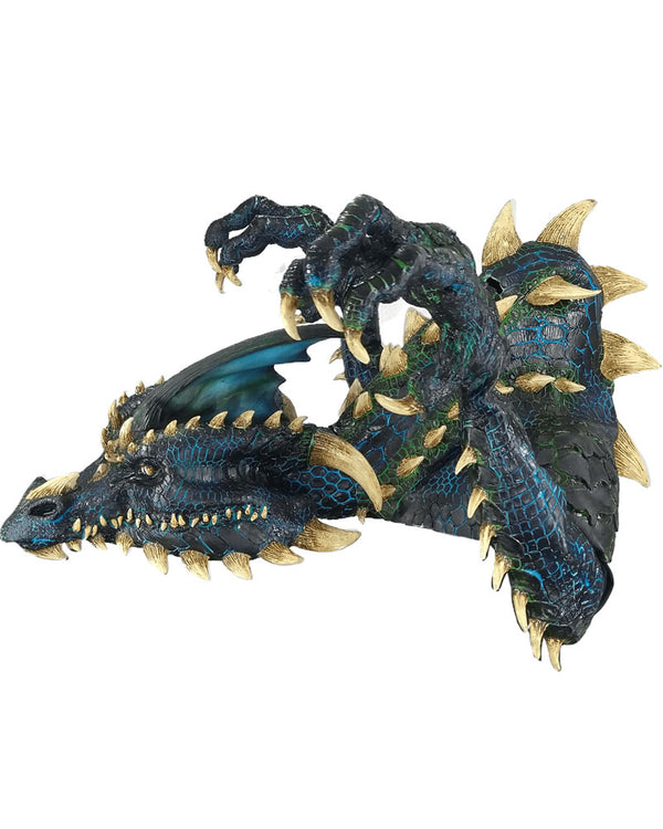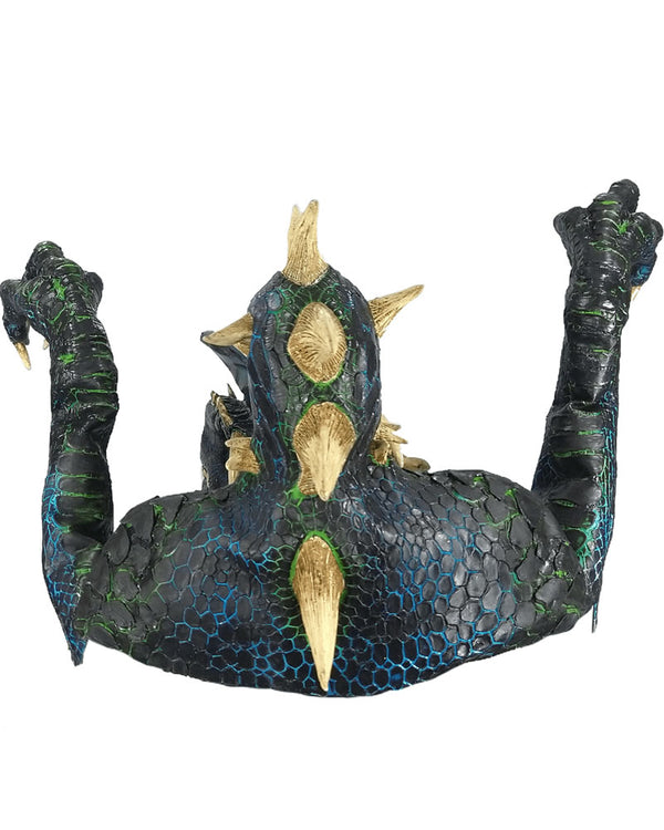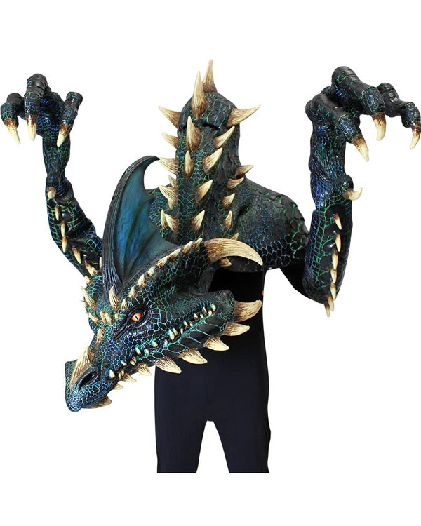Transform into a fire breathing dragon in this outstanding Smoulder the Black Dragon Premium Puppet Mask. This true movie worthy mask will convince your friends a dragon has entered the party. This mask comes in the shape of a super detailed blue and black scaled dragon with bone coloured spikes and claws. This puppet style mask is designed to be worn over your head and shoulders with eye holes at the top of the neck. To give the movements of a dragon there is an included pair of long gloves that features large dragon claws on the end.