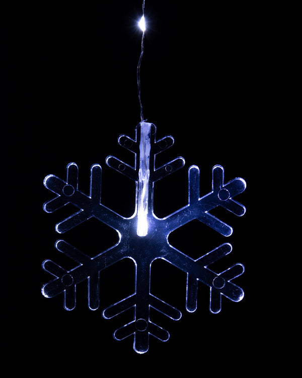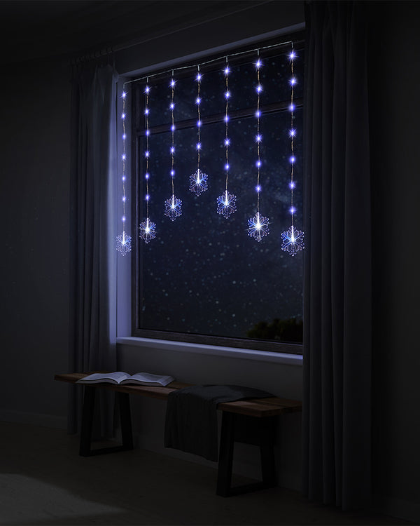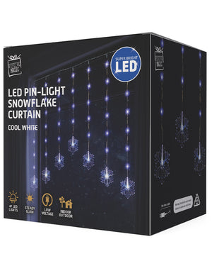 Add a pretty aesthetic to your decorations this Christmas with these Snowflake Curtain White LED Pin Lights. These lights have 7 hanging snowflakes and come with a controllable function to alternate between flashing lights and a steady glow. These lights are a cool-white colour that are shined by LED, bringing with them a calm and pretty aesthetic that will look gorgeous inside or outside of your home. These lights have been made easy for your convenience, just hang them up, plug them in and watch the magical snowflakes shine. The lights are low voltage and have SAA approval and ERAC registration, so it’s safe for indoor and outdoor use and will keep your mind at ease knowing it's safe in your home. Perfect for Christmas, decorations and much more.