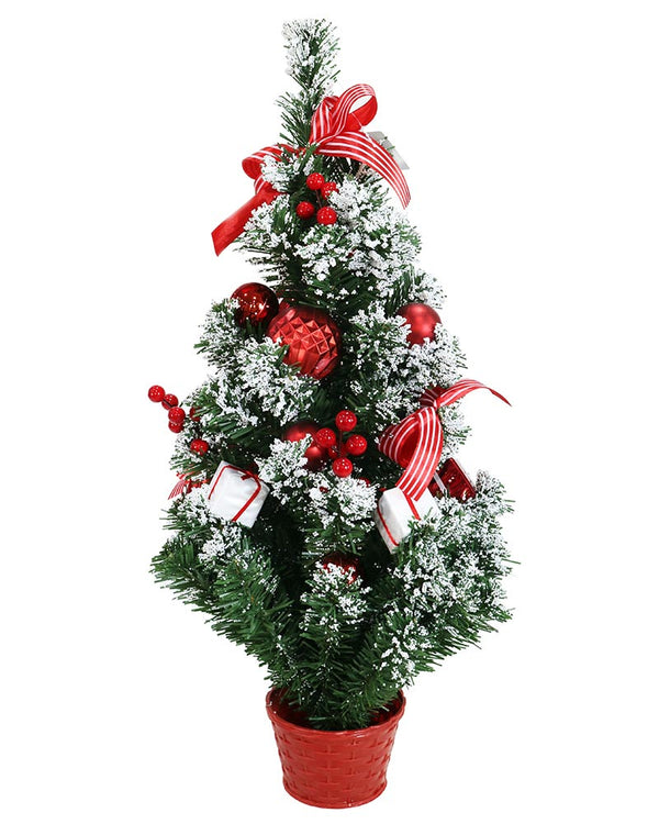 Snowy Red and White Potted Christmas Tree 60cm