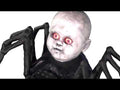 This absolutely terrifying Spider Baby Animatronic will have your guests having nightmares for days. This eerie animatronic comes in the shape of a black spider with six legs and large sharp fangs on the front. On top of the spider's body is a white baby head with glowing eyes. When switched on, this spider will scoot around with the attached wheels underneath while making horrifying sounds and laughing. For best results, place on a hardwood floor or flat surface.