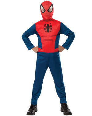 Your Spidey senses will be tingling when you wear this Spiderman Value Boys Costume. The jumpsuit is long sleeve and digitally printed with Spiderman's signature red and blue colours and the black spider logo on the chest. The costume comes with a detachable printed red headcover that features two mesh eyeholes surrounded by a black outline.