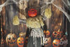 - Standing scarecrow with menacing pumpkin head animatronic.
