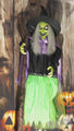 This Standing Witch with Broom Animated Decoration 1.9m is designed to cast a powerful spell of fear over your home. This witch animatronic holds onto her broomstick, waiting silently for her moment to strike. Her eyes glow with an eerie red light, and horrifying sounds fill the air, as if she's ready to summon a storm. The sturdy stand ensures she remains upright, casting a spell on all who pass by. Pair her with other spooky decorations for a truly magical Halloween experience.