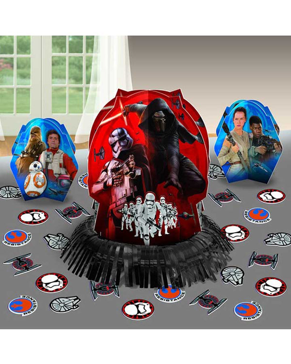 Decorate your Star Wars themed party with this awesome Star Wars Episode 7 Table Decorating Kit. This kit comes with 1 large centrepiece measuring 32cm, 2 smaller centrepieces measuring 18cm each and 20 large confetti pieces measuring 5cm each. Combine with our range of Star Wars Episode 7 partyware including party cups, tablecovers, napkins, lolly bags and more. May the force be with you!
