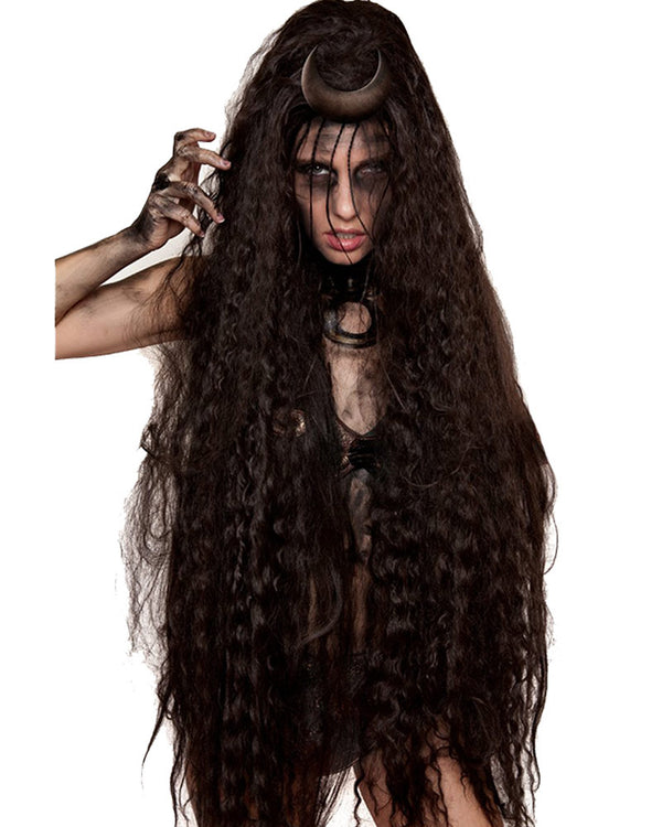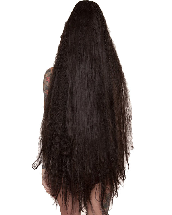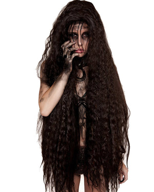 Bring out your inner witch and perform those evil mystical enchantments when your wear this Suicide Witch Premium Wig for Halloween or next dress up event. This incredible wig comes in a long dark brown colour with crimped strands and braided strands at the hairline and falls down to your thighs. Great for evil witches for Halloween, villains from comic books or you want to have some extra long hair for the day. Pair up with our other witch accessories and create your very own ancient sorceress. Wear a wig cap for added comfort and to keep your own hair under wraps.
