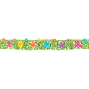 Summer Hibiscus Fringed Plastic Banner & Fabric Flowers