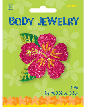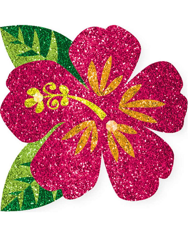 Sparkle under the Hawaiian sun when you wear this Summer Luau Hibiscus Glitter Body Jewellery. This peel-and-stick body sticker is perfect for glamming up your outfit Luau-style and is super easy to apply and remove. The sticker comes in the shape of a hibiscus flower in glittery pink with orange and yellow glitter flower details, also featuring two green glittery leaves to complete it. Wear this at your Luau party or grab a few and give them away as party favours! Combine with our range of Hawaiian Luau party supplies including party cups, party plates, tablecovers and more.