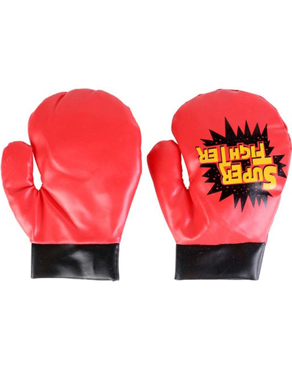Complete your next boxer costume with these Super Fighter 19cm Boxing Gloves. Included is a pair of red boxing gloves that feature black cuffs and the words 'Super Fighter' written in yellow with a black jaggered surrounding.