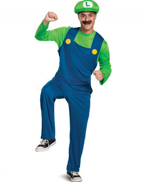 Beat your brother as you race to the finish line in this Super Mario Brothers Luigi Classic Mens Costume. Dress as the classic Luigi in this costume which comes with jumpsuit styled to look like a blue overalls with two large yellow buttons on the straps and a green long sleeve shirt underneath. There is also Luigi's iconic green newsboy style hat with an 'L' printed on the front which is made from foam. To complete the look of one of the iconic duo, this costume comes with a black adhesive moustache. Grab yourself a partner to dress as Mario to bring the iconic brothers to life.