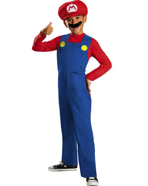He'll look like the cutest plumber around in this Super Mario Brothers Mario Classic Toddler Costume. The costume features a blue jumpsuit with attached red shirt and yellow buttons. A red cap and stick-on moustache are included to complete the look.