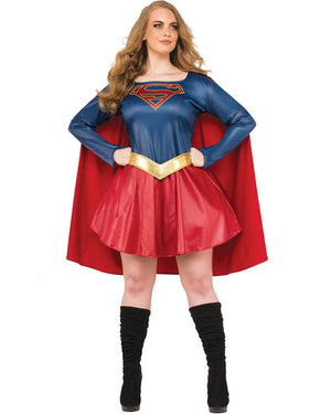 Transform into a stunning superhero in this Supergirl Plus Size Womens Costume. This officially licensed costume is a replica of the one worn by Supergirl in the TV series Supergirl and features a dress with a blue top printed with the classic Supergirl logo and a red skirt, an attachable red cape and a gold belt. Strong and stylish!