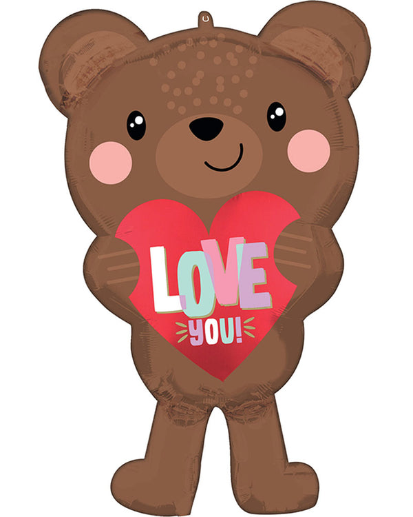 Express your love in the warmest hues with our Satin Brown Love You Bear 86cm SuperShape Foil Balloon. This bear-shaped balloon, featuring a satin brown finish and a heart that reads 'Love you!' is a delightful and charming declaration of affection. Let this lovable bear share your sentiments in the most endearing way, adding a touch of sweetness to your Valentine's Day celebration. Combine with our range of Valentine's Day balloons to mix and match and create the perfect scene for your party.
