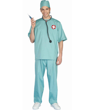 These classic Doctors Scrubs make for a great costume on their own, or the starting point for your own creation. A green matching set, the shirt has a red and white medical cross on it with 3/4 sleeves, and the pants have an elastic waist. Suitable for men or women, a standard size that fits 32-36 Men or Size 10-14 Women. Comes with cap as well.