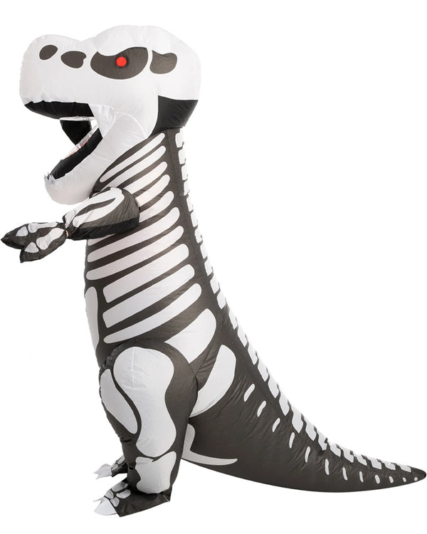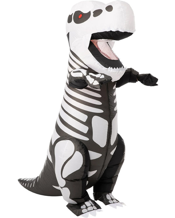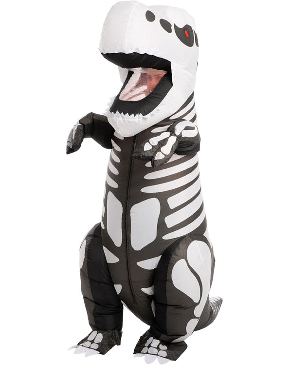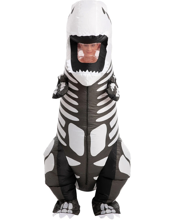 Roar back to life in prehistoric style with the T-Rex Skeleton Inflatable Adult Costume. This terrifyingly cool costume combines the ferocity of a T-Rex with the eerie chill of a skeleton, creating a Halloween look that’s both fearsome and fun. With a clear panel at the mouth for easy visibility and a battery-operated fan to keep the costume inflated, you'll be ready to stomp your way through any Halloween party. Perfect for dinosaur enthusiasts, Halloween lovers, and anyone who wants to make a larger-than-life entrance. Beware, this T-Rex is back from extinction and ready to haunt the night!