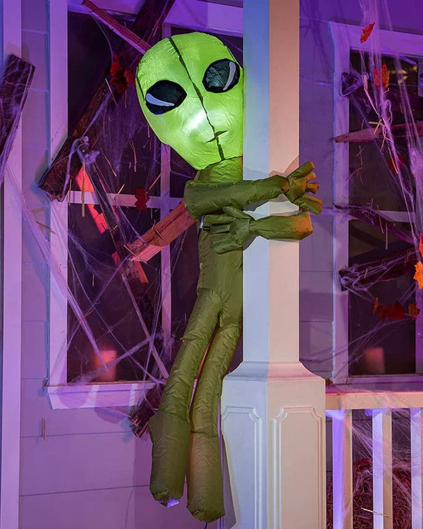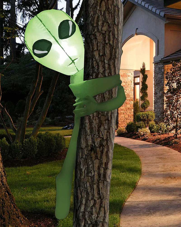 Make sure your home is the number one landing place for all Aliens this Halloween with this fun Tall Alien Tree Hugger Inflatable 1.2m. The inflatable features a 1.2m tall green alien that inflates easily and quickly with the attached cord and plug. Fasten the tree-hugging alien to any tree and secure it in place with the included ground stakes and built-in sandbags. Perfect for displaying all year round or for your next space and alien-themed party, or even for Halloween. Even better, the inflatable decoration lights up at the alien's head so it gives off a creepy glow at night time making it perfect for day or night celebrations.