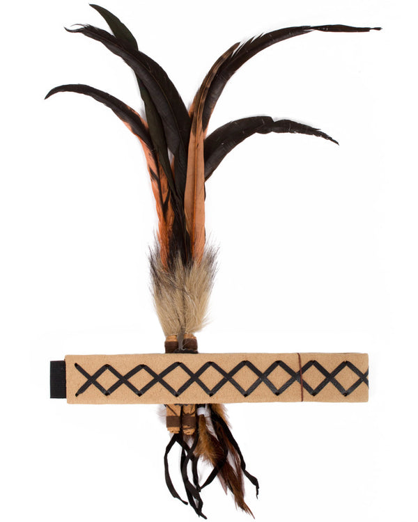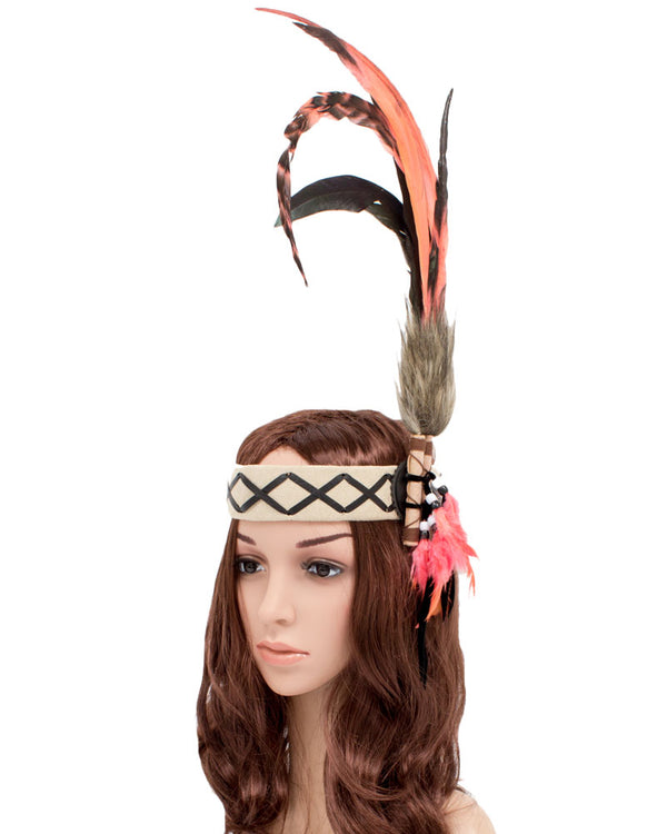 Look like an authentic native princess in this Tan Tribal Headband. This authentic looking, the extremely high quality headband has feathers protruding from the left side and Native American inspired design around the headband.