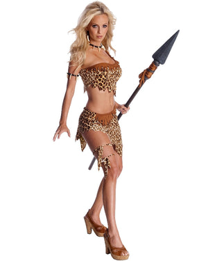 Go wild in this Tarzan Secret Wishes Jane Womens Costume. Whether it's swinging from the tree tops or dashing through the undergrowth this is the costume you need. The costume is mostly comprised of eye catching animal print velour, with a glitter encrusted brown trim. You will notice the skirt has built in underwear to help keep you comfortable and modest, Jane Porter might be wild but you won't have to be. All you need to finish this costume are some animal jewellery accessories, some warrior face paint and optionally a spear to show you keep your quarry after the hunt.