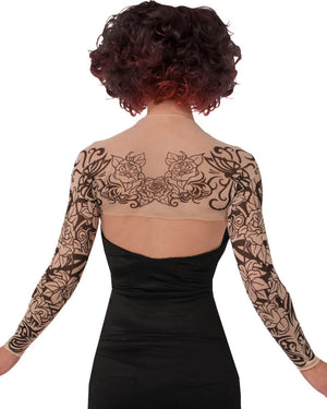 Shock or impress your friends (depending on their tattoo stance!) with this Tattoo Shoulder Shrug! Featuring a flesh coloured mesh shrug covered in heavy black tattoos that look like you've spent a long time in the tattoo parlour!