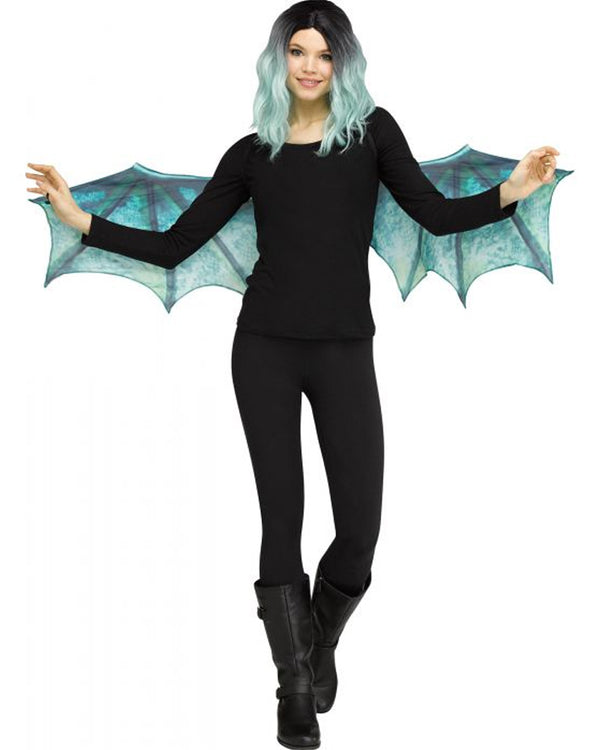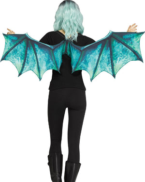These Teal Dragon Wings are the perfect way to enhance your icy dragon costume this Book week, Halloween, Game of Thrones or medieval party. The wings come in a soft light-weight fabric with a digitally printed design of teal-coloured dragon wings. Elastic straps worn around the shoulders hold the wings in place and two finger loops are included near the end of the wings so they can extend when you raise your arms.