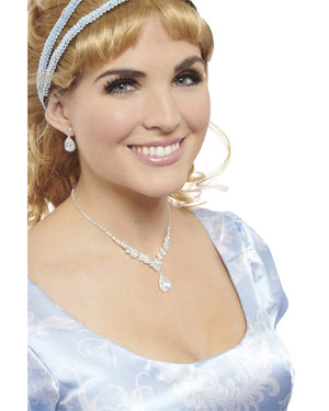 Make an elegant entrance at your next party with this Teardrop Necklace and Earrings set. Included is a silver teardrop rhinestone necklace with sparkling, clear faux gemstones and matching earrings. Whether you're taking inspiration from a princess, celebrity, movie, or a certain London debutante, this sparkling accessory will most certainly make an impression at your next ball or promenade.