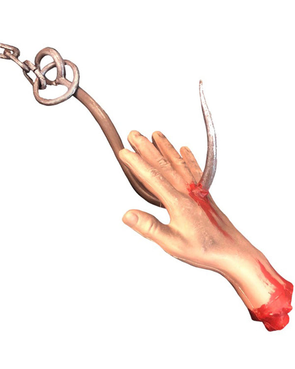 Your stomach will drop once you enter the butchery and see our The Butchery Severed Hand Prop. Featuring a life-sized severed hand attached to a meat hook with bloody highlights around the wrist and around the meat hook. Just hang from the meat hook to create gory Halloween.