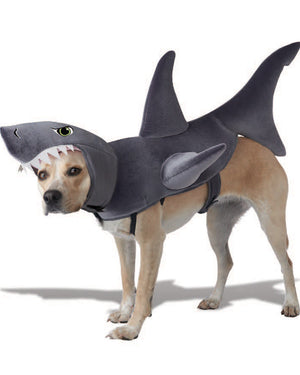 This The Great White Bark Pet Costume will have your pup looking exactly like the little land shark it is. The costume features a grey shark body that sits over your pup with elastic straps for the front legs and velcro straps to secure in place under the body, as well as a funny short character hood. The hood features shark eyes and felt teeth and sits over your pup's head with a velcro closure under the chin. Perfect for dressing up your pup alongside you for any under the sea themed event.