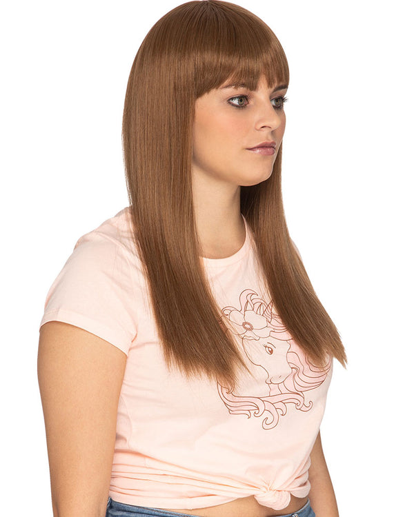 Get one of the most iconic Aussie looks with this fun Hornbag Deluxe Long Brown Wig. This gorgeous long wig is designed after Kim from the hit Aussie TV Series Kath and Kim and comes in a natural looking brown and is straight and features straight bangs in the front. This wig is also great if you just want to have a different hair colour and style for the day! A bonus wig cap is included for added comfort and to keep your own hair under wraps.