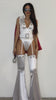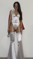 Rule Las Vegas in style with The King Womens Costume, a seductive homage to a rock 'n' roll legend. This daring costume includes a white bodysuit that features a plunging collared neckline with ornamental silver hardware. There are attached white garter straps and, a short white cape at the back, lined with dazzling red sequins and secured with velcro tabs. Flare thigh highs with sultry side slits to elongate your legs, making every step a showstopper. A white wide waist belt, with a chunky silver buckle, cinches your waist for a striking silhouette. Complete the look with the included pair of aviator-style costume sunglasses, embodying the charisma and confidence of a rock legend. Unleash your inner Elvis Presley and make a grand entrance.