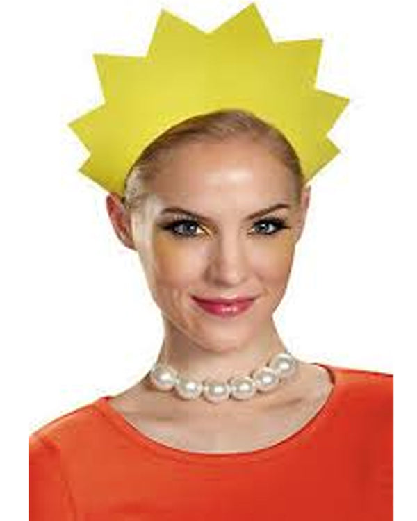 Become everyone's favourite cartoon sister with this The Simpsons Lisa Adult Headband and Necklace Set. The town of Springfield won't be complete without you, just like your costume won't be complete without this iconic yellow headband to imitate Lisa's spiky hairdo and her iconic pearl necklace to match. Perfect for finishing off your Lisa Simpson costume for cosplay events, cartoon-themed parties and other fancy dress themes.