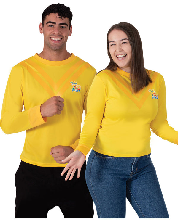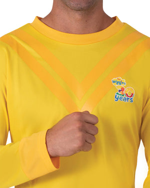 Show off those dance and ballet moves in this The Wiggles Emma Adult Costume Top. This long sleeve yellow top is based on the yellow Wiggle Emma and features a crew neckline, two iconic dark 'V' stripes down the chest, and the 30th Anniversary Fruit Salad logo on the left chest. This top is perfect for a group costume where you and your friends can each dress as one of The Wiggles members.