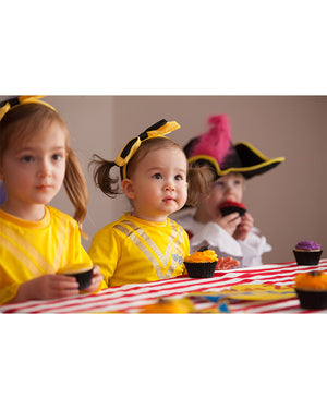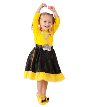 You'll be doing the ooby dooby with might all night long in this adorable The Wiggles Emma Dress Deluxe Toddler and Girls Costume! This costume is modelled off Emma from the children's music group The Wiggles and includes a yellow dress with a detailed glitter bodice and a black skirt with an attached belt and tulle underlay. Would work great as a group costume!