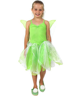 I Do Believe In Fairies I Do!Travel to Neverland with Peter and wendy in our Tinker Fairy Dress Girls Costume. Featuring a leafy green girls dress, resembling your favourite fairy from Neverland! The dress is styled with a light green bodice and an attached green tutu overlayed with translucent tule material. Great for your daughter's book week costume!
