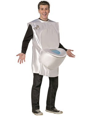 You'll be sure to get a lot of laughs when you wear this Toilet Adult Costume to your next fancy dress party. This costume comes with a white pullover tunic with a flush handle and foam toilet seat front that flips up and down.