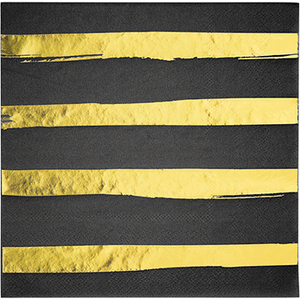 Touch of Black Velvet and Gold Foil Striped Lunch Napkins Pack of 16