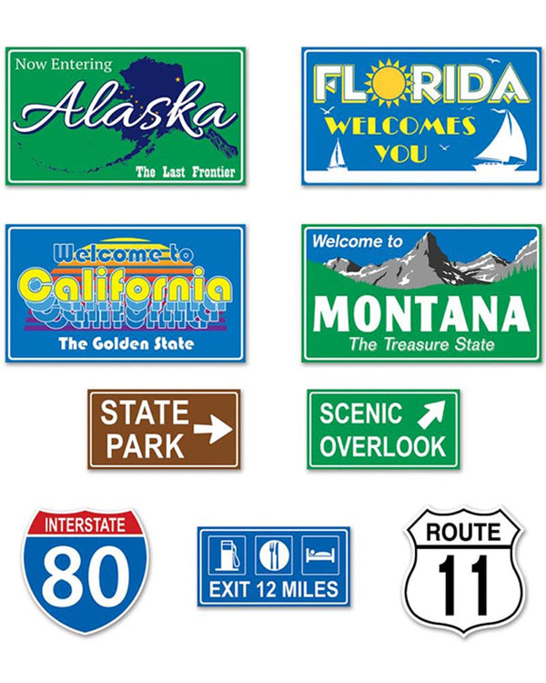 Travel America Road Sign Cutouts Pack of 9