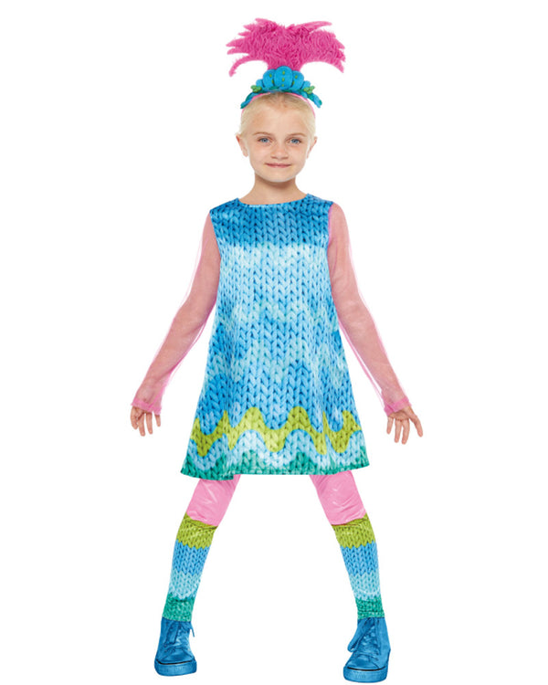 Get ready to rock out with your favourite Trolls in our Trolls 3 Band Together Poppy Girls Costume! This epic costume is straight out of Troll Village and is guaranteed to bring the party wherever you go. The dress features a funky blue, green, and yellow knitted pattern on the front, perfect for showing off your colourful personality. The sleeves are made from vibrant pink mesh fabric, adding a touch of whimsy to your look, while the leggings are a total vibe, with pink on top and a matching knitted print on the bottom, because who says you can't be stylish from head to toe? The headband covered in soft pink satin material and topped with a leaf crown print on felt, this headband is the ultimate accessory for any Troll queen. Plus, it even has pink faux hair sticking out of the top for that extra dose of troll-tastic flair! Grab your friends, strike a pose, and get ready to rock the world with your Troll squad. It's time to band together and spread some rainbow magic wherever you go!