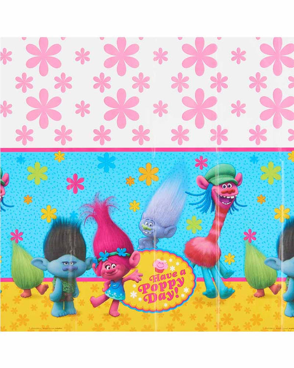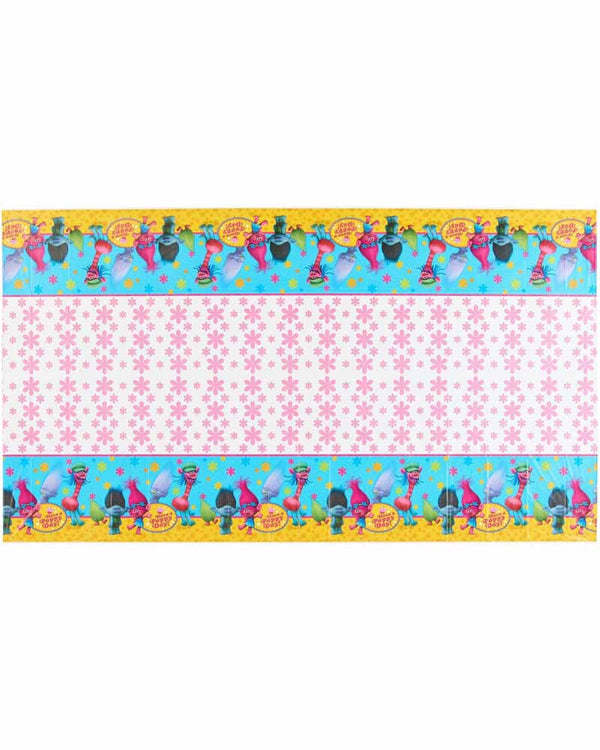 Decorate your party table with this cute Trolls Plastic Tablecover. This tablecover features all your favorite characters, including Branch, Poppy, Guy Diamond, Fuzzbert, and Cooper. Great for both indoor and outdoor use. Combine with our range of Trolls party supplies for an adorable birthday celebration.