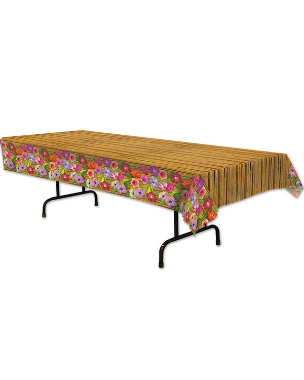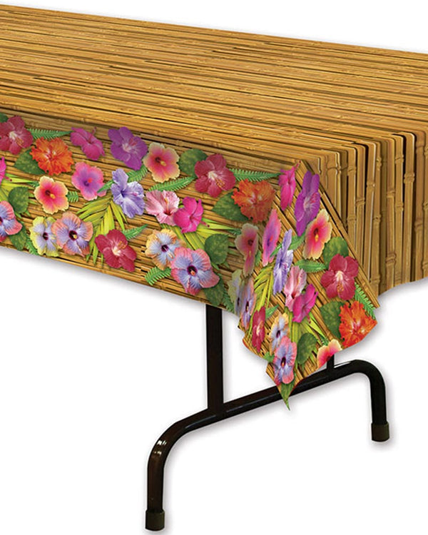 Set the scene for your next Hawaiian party with this Tropical Luau Tablecover. The tablecover features a yellow bamboo print all over, with colourful tropical flowers and leaves bordering both sides of the cover. Combine with our range of Hawaiian Luau party supplies including party cups, party plates, tablecovers and more.