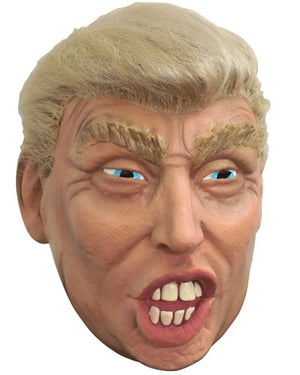 Transform into the billionaire Republican candidate and cause controversy wherever you go in this Trump Mask with Hair. This high quality latex mask features his famous swept blonde hair, open mouth and slits on the eyes for your vision.