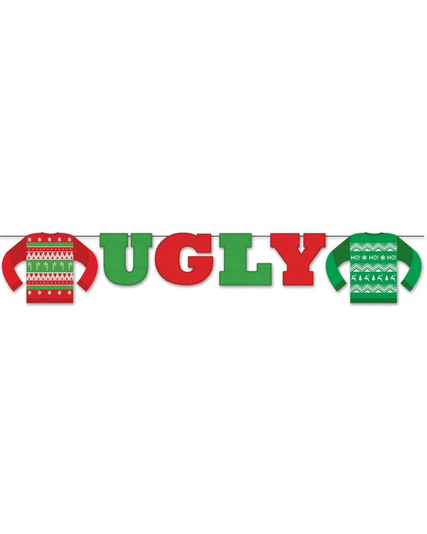 This Ugly Sweater Streamer is perfect for decorating your ugly sweater theme Christmas party. This streamer is made of cardstock material printed on one side only and comes with ribbon for easy hanging from doorways and walls.