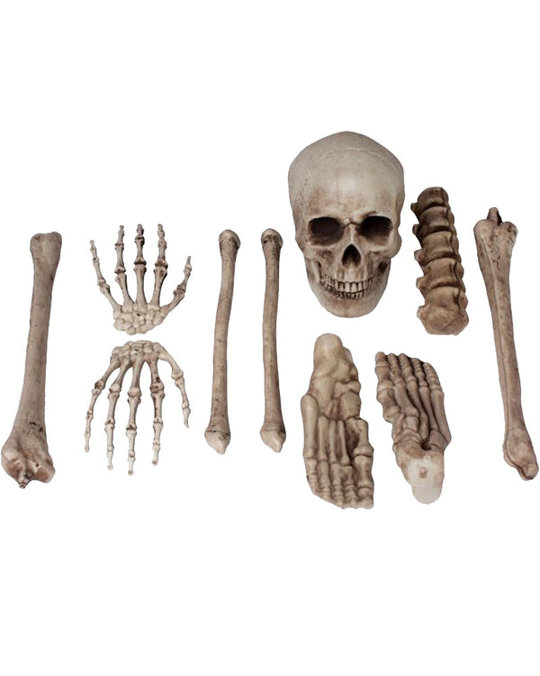 Bag o Bones 10 Piece Set: Your graveyard scene won't be complete this Halloween unless you get this Bag o Bones 10 Piece Set. The set comes with a skull with an articulated jaw, a section of the spine, two hands, two feet, two leg bones and two arm bones. Keep them in the bag and hang them up or take them out and arrange them on a grave, in your garden or anywhere you like to make it look like someone was buried there. A perfect addition to your Halloween decorations.