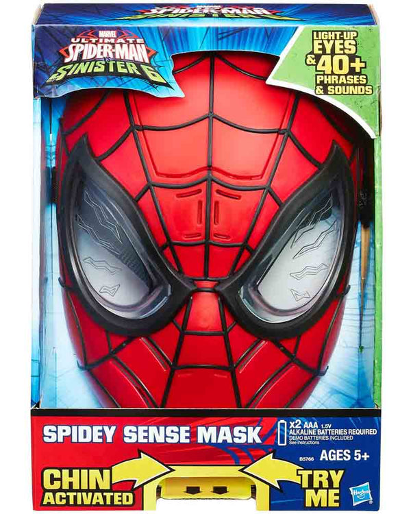 Fighting the Sinister Six on your own has never been easier! Well... that's debatable, but at least you'll look the part in this Ultimate Spiderman v Sinister 6 Mask! This mask includes 40+ phrases and sounds, light-up eyes and authentic Spider-Man styling. There's also a chin-activated feature that when pressed once allows you to hear the villains taunting you on and when pressed twice allows you to hear Spidey's witty responses!