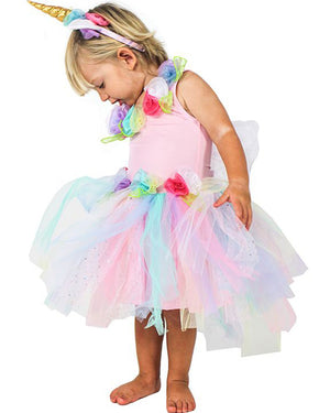 Pastel Unicorn Dress and Headband Premium Girls Costume