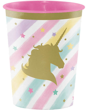 Your little girl and her friends are going to love popping all their party favours inside this Unicorn Sparkle Favour Cup! This cup features a gold unicorn against a rainbow stars and stripes design and a gold border. Combine with other products from our Unicorn Sparkle party supplies range for a coordinated look!
