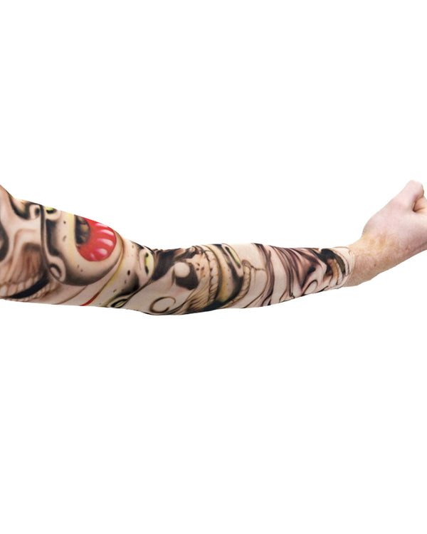 You will totally fool your friends with this Unicorn Tattoo Sleeve, designed to give you the experience of having a full sleeve of tattoos without all those hours under the needle! The sleeve is made from a flesh coloured mesh and is covered with black and white fake tattoos with splashes of red.